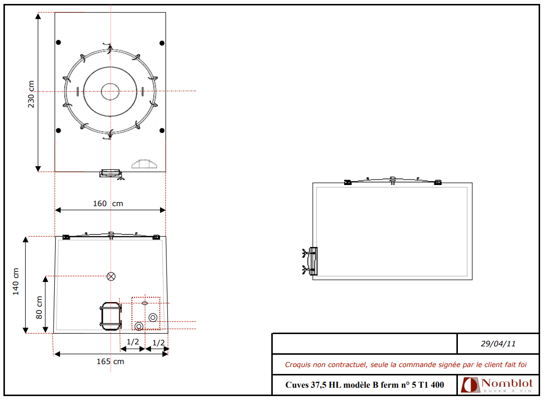 - Domverschluss: 1400 mm Durchmesser inkl. 80 mm Nippel-Stutzen, Edelstahl rostfrei, Marke Bellot No.5
